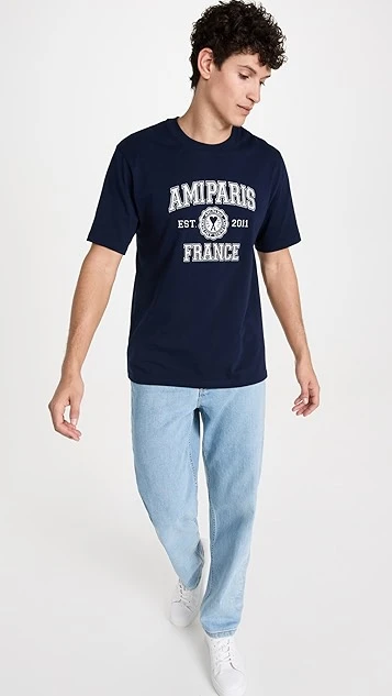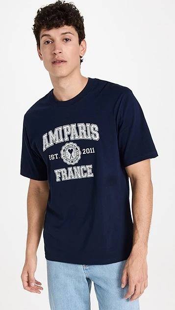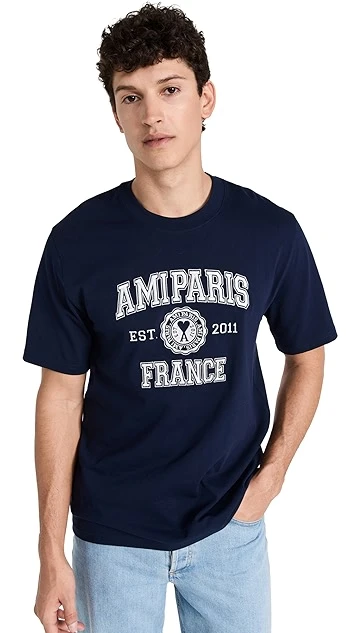 Brand lettering in a collegiate motif distinguishes this soft cotton T-shirt from the specialists in elevated basics at AMI.