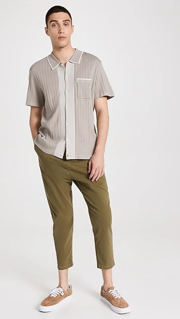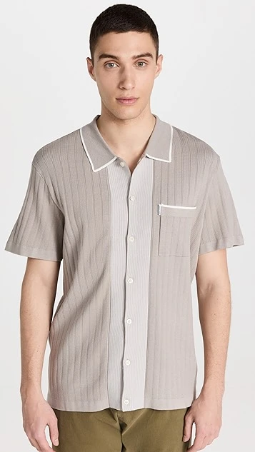 Thin contrast trim at the collar and a colorblock panel at the placket bring a subtle throwback feel to this softly ribbed button down shirt from Banks Journal.