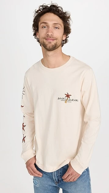 An assortment of sun graphics details this long-sleeve logo tee from the specialists in west coast basics at Banks Journal.