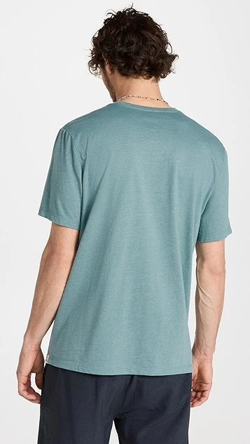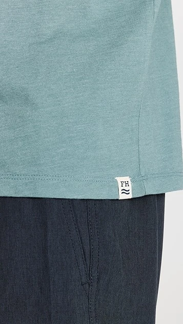 A simple Fair Harbor white tee in a lightweight cotton blend, accented with a subtle logo tag at the hem.