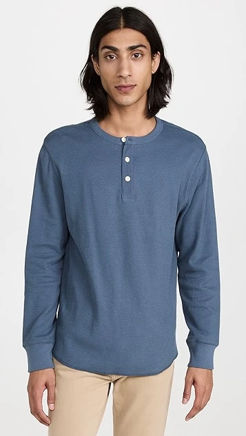 - Crew neck and partial button placket