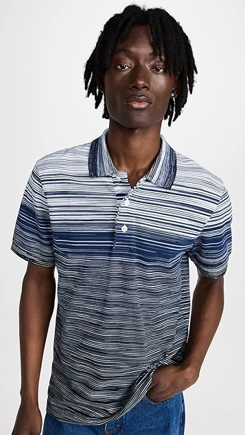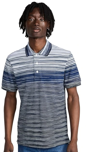 - Polo neckline and short sleeves with ribbed cuffs