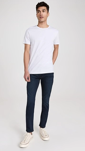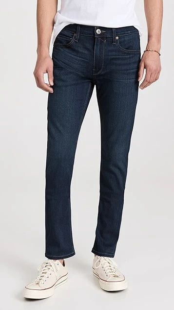 Skinny-fit PAIGE jeans with a saturated indigo wash. The cut sits slightly below the waist with a fitted profile through the thigh.