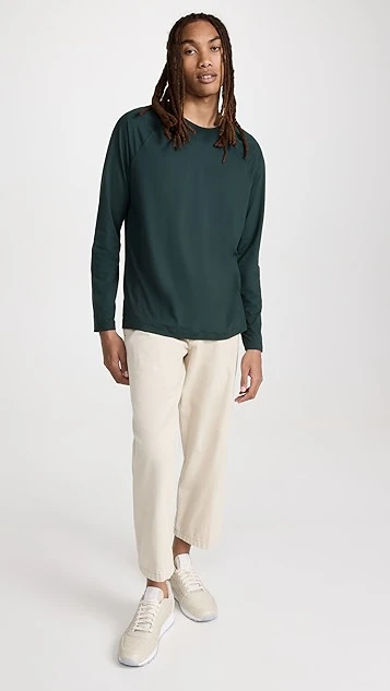 - Crew neckline and long raglan sleeves