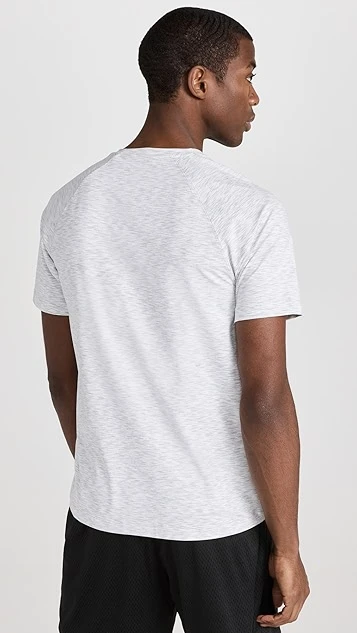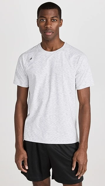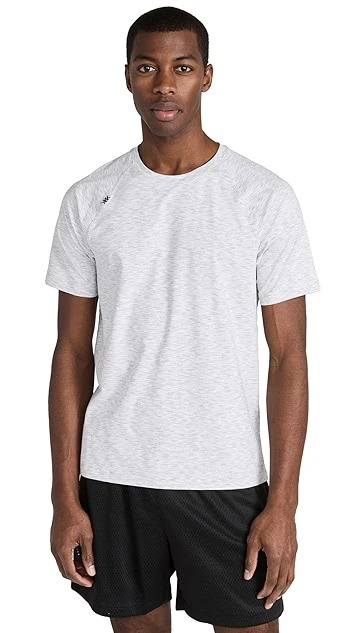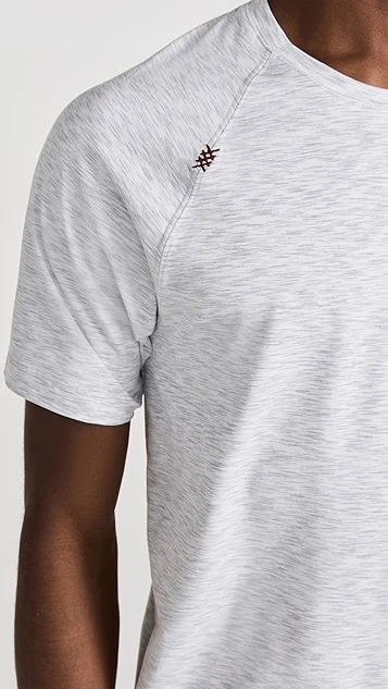 A workout or weekend-ready Rhone tee, designed with raglan sleeves and accented with signature contrast stitching.